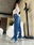 Tiro alto, rígido. Con 2 botones al costado de la cintura, abertura al costado de la botamanga. Marca las locas original.