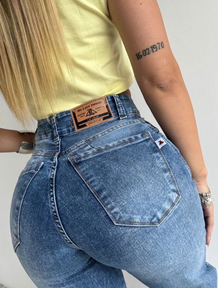 Con detalles de costuras en largo. Tiro alto elastizado. Marca las locas original.