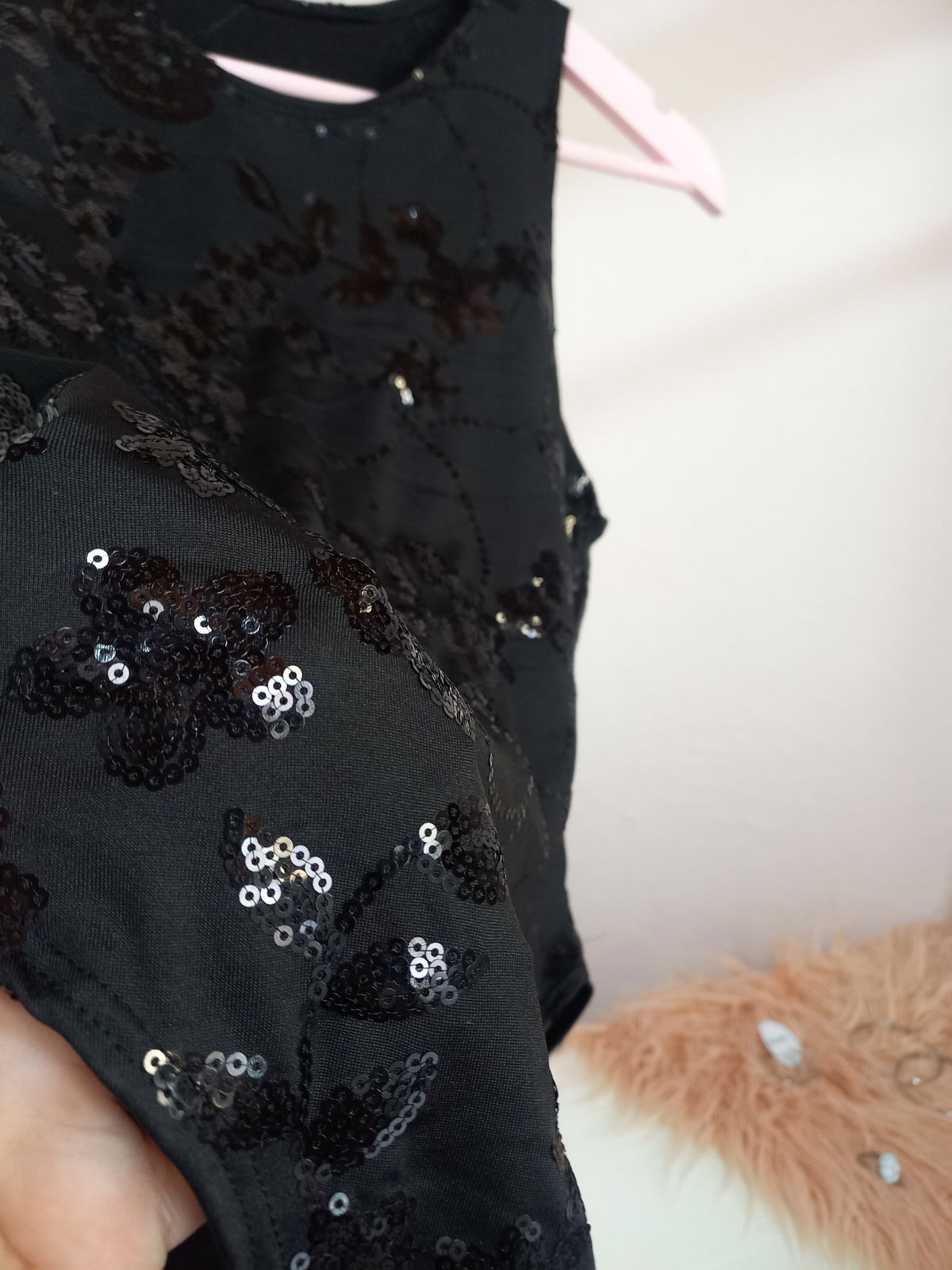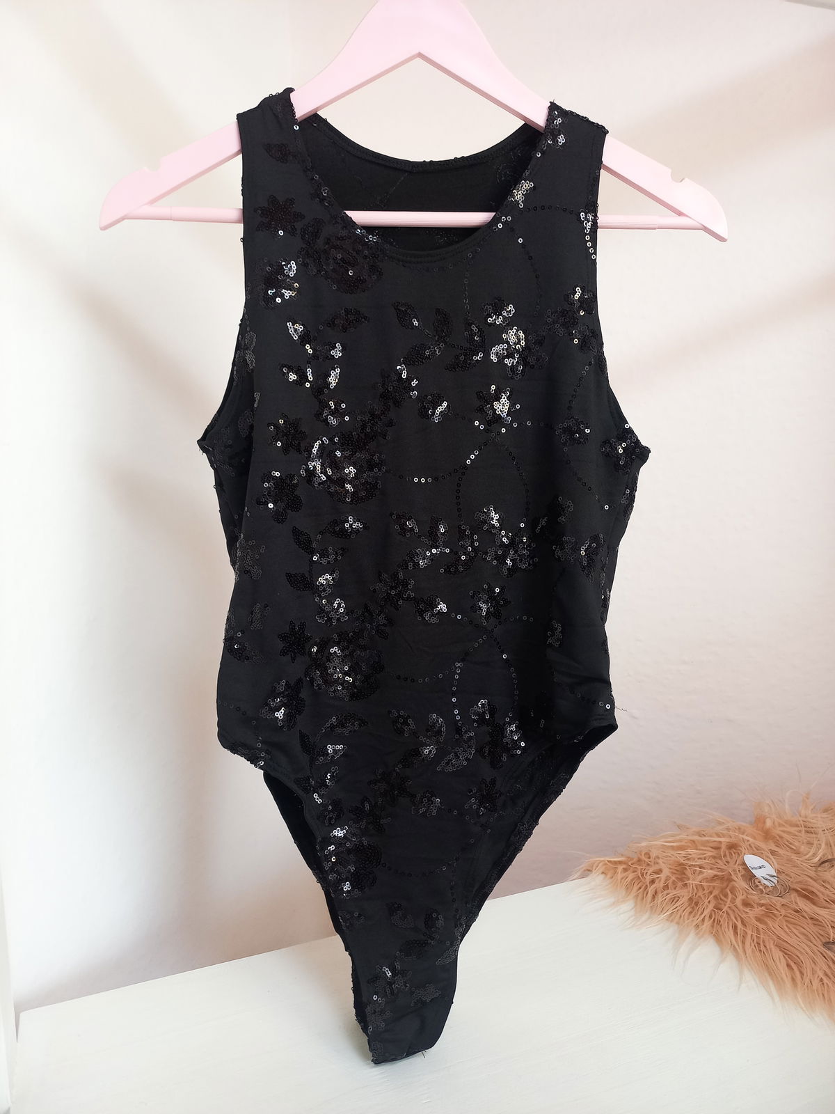 De microfibra con detalles en flores de lentejuelas. Tiene broches en zona íntima. Talle único abarca hasta un L.