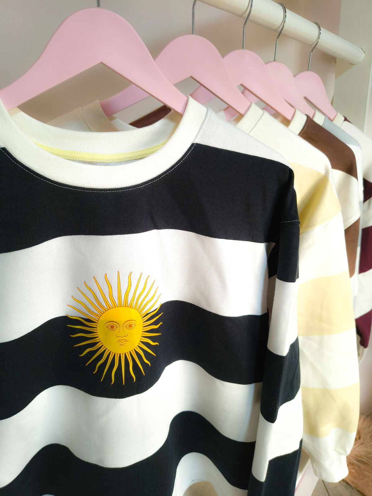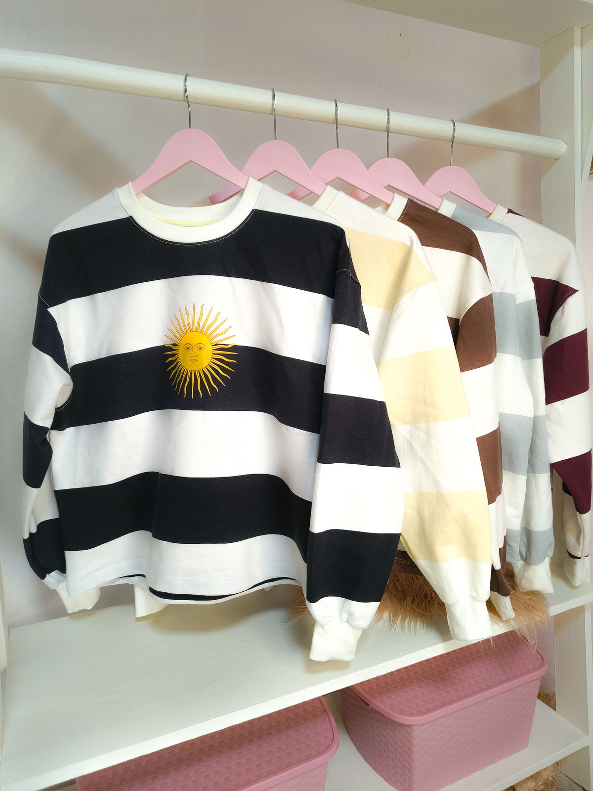 De algodon rústico, estampado DTF. Con puños. Talle único abarca hasta un L, modelo oversize.
