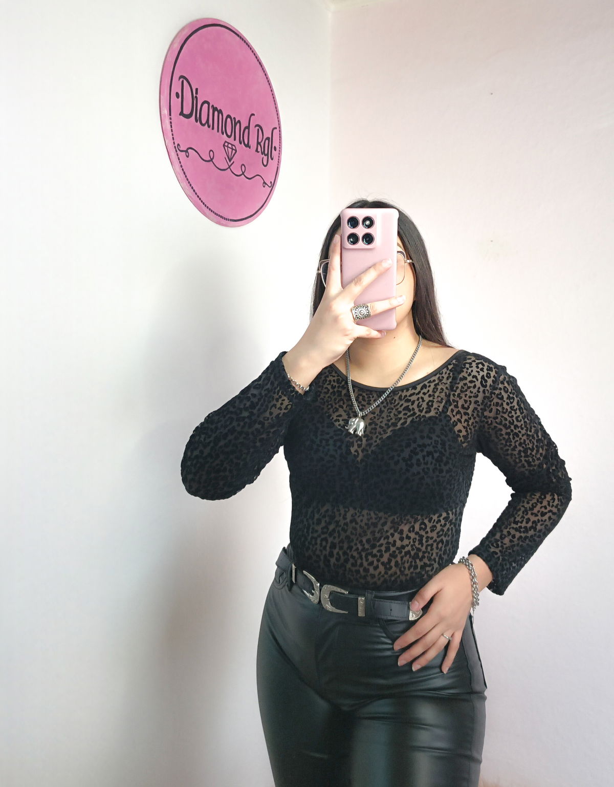 De microtul combinado con terciopelo y lycra. Talle único abarcan hasta un L. Enterizo.